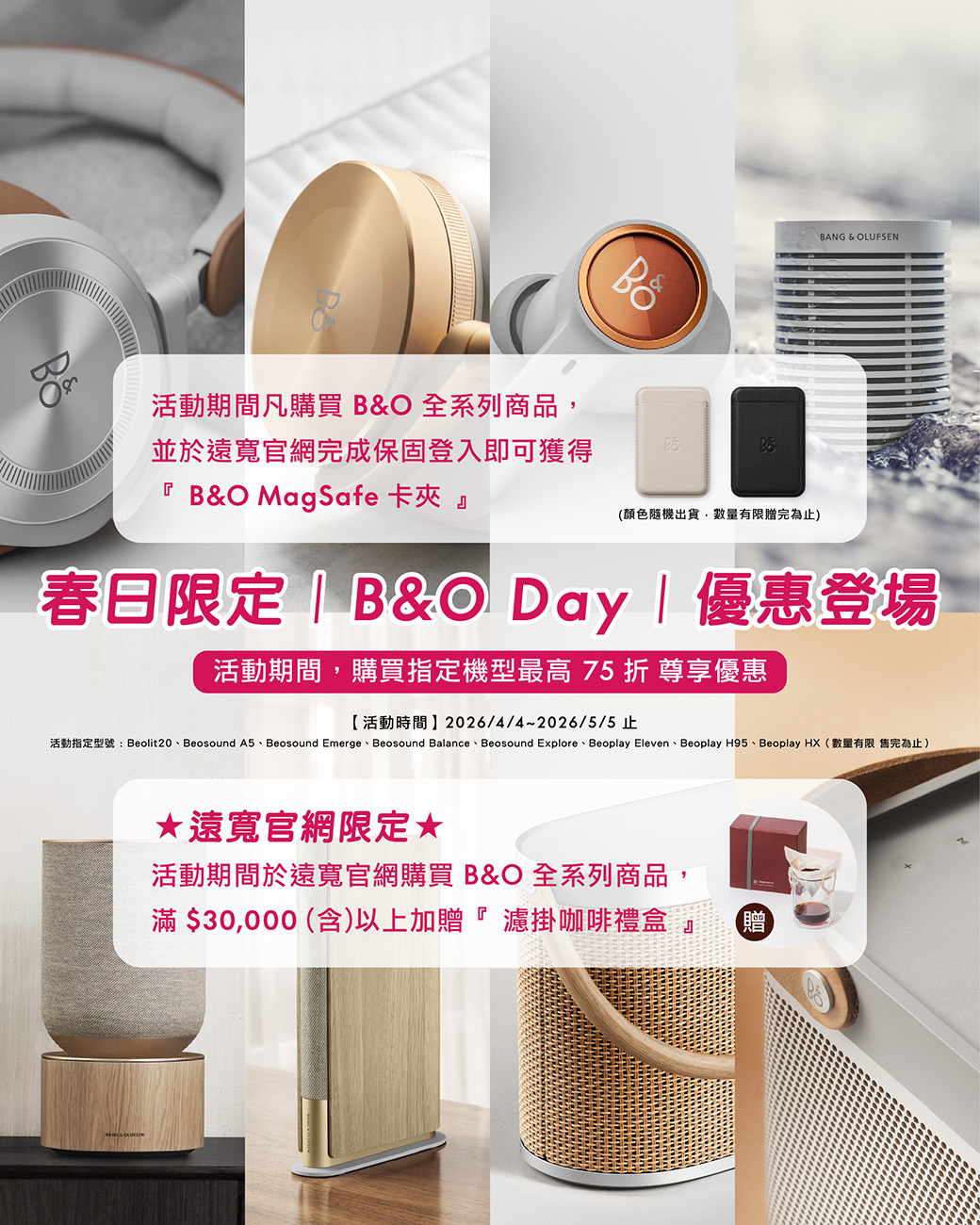 活動期間凡購買B&O全系列商品,並於遠寬官網完成保固登入即可獲得『B&O MagSafe 卡夾』