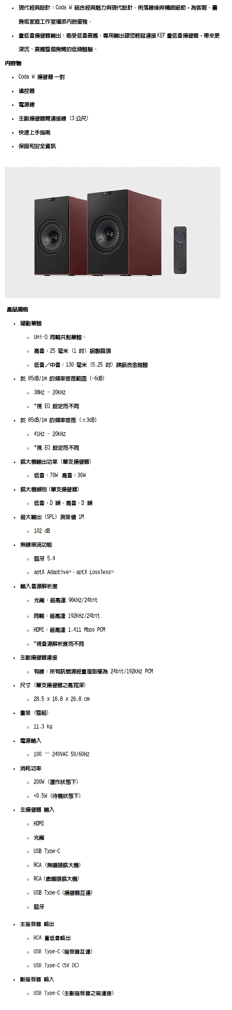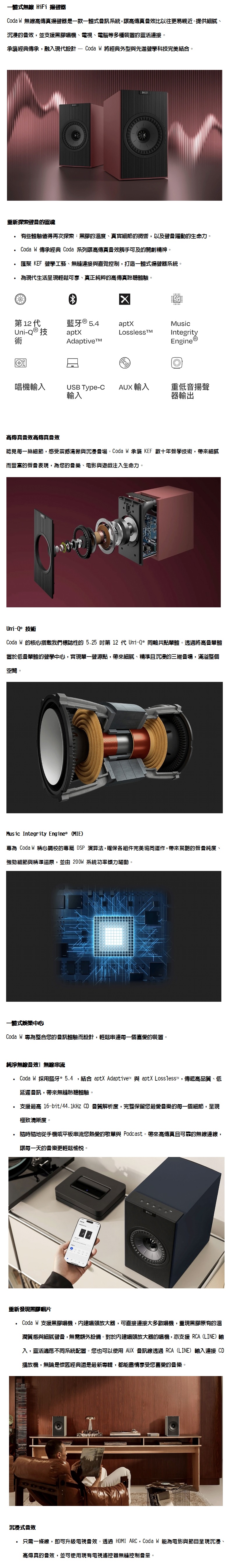 KEF Coda W 無線 HiFi 藍芽主動式喇叭