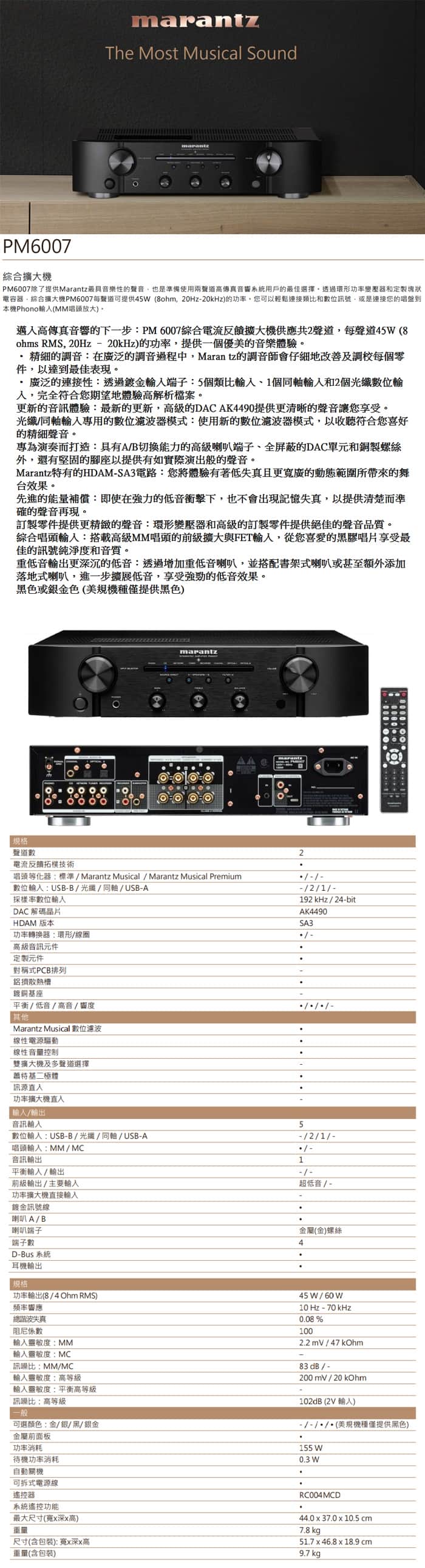 Marantz 馬蘭士】Marantz PM6007 綜合擴大機
