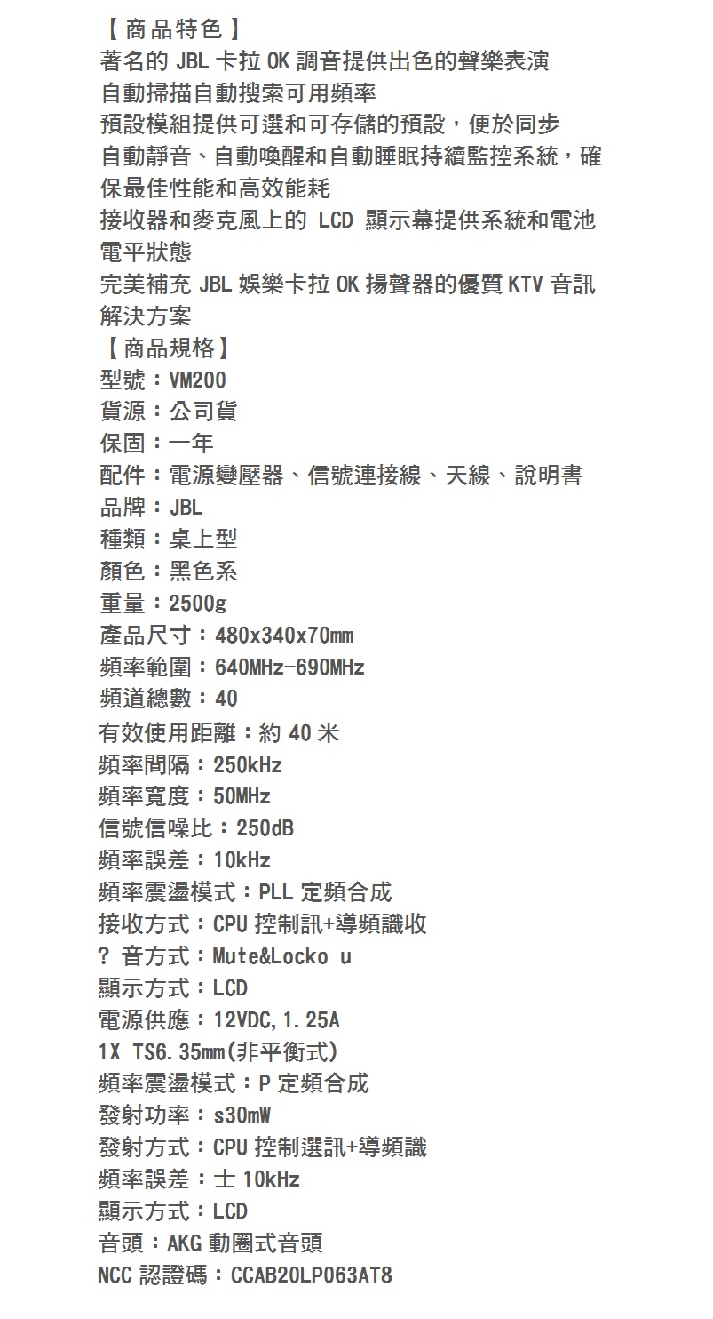 JBL VM200 無線麥克風組【公司貨保固】