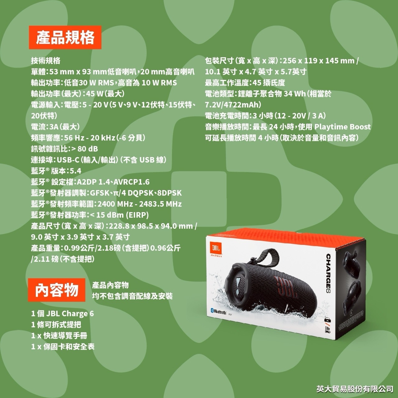 JBL Charge 6 可攜式防水藍牙喇叭【公司貨保固】