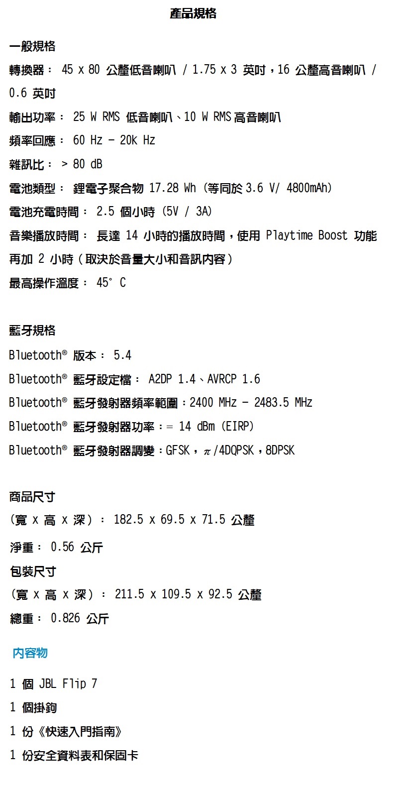 JBL Flip 7 可攜型防水藍牙喇叭 【公司貨保固】