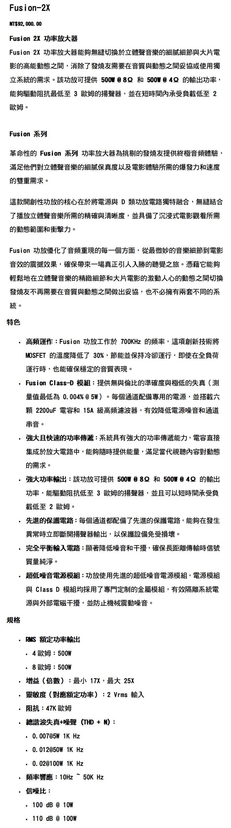 Nuprime Fusion-2X 大功率2聲道後級擴大機 【公司貨保固】