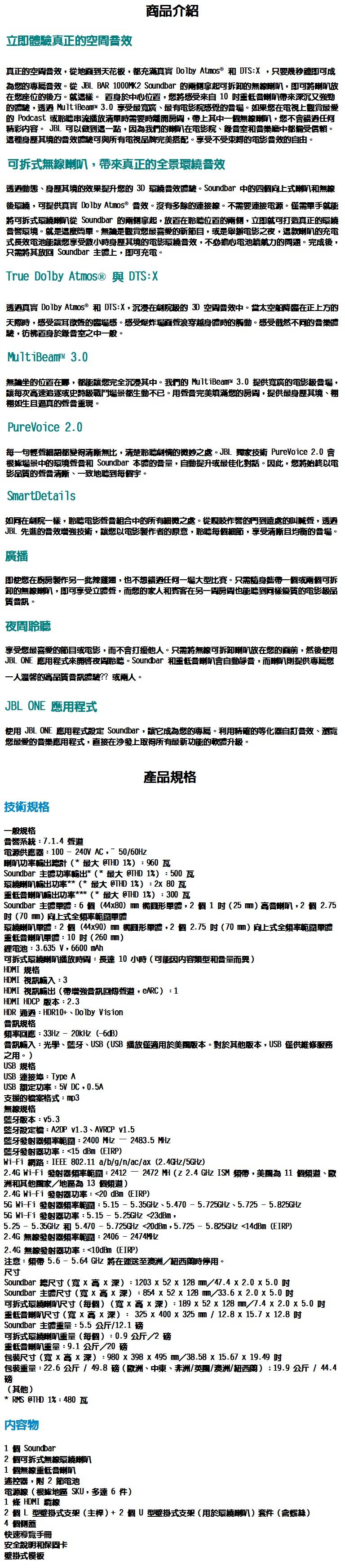 JBL BAR1000 MK2 7.1.4聲道家庭劇院喇叭 英大公司貨保固