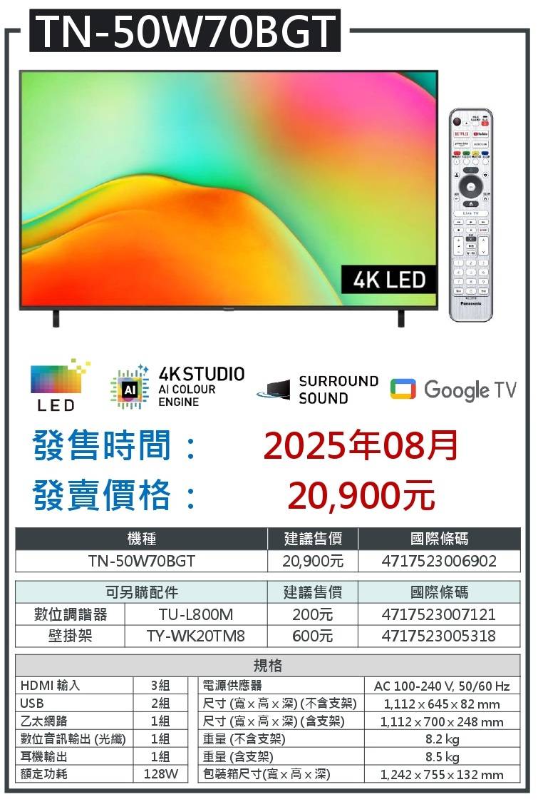 Panasonic 國際牌 TN-50W70BGT 智慧聯網電視 GOOGLE TV【公司貨保固】