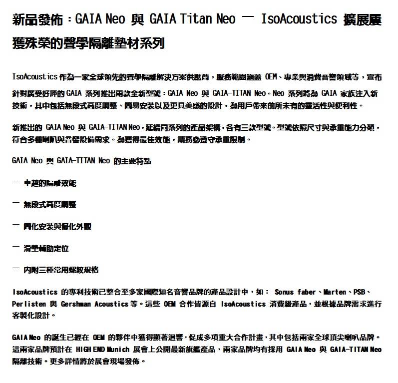 IsoAcoustics GAIA I Neo 落地喇叭腳墊 可調高度 一組4入 可承重100公斤